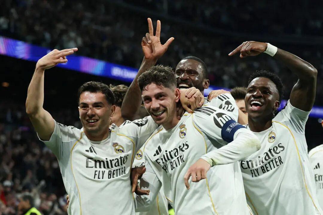 巴尔韦德上演帽子戏法的进球则是精妙绝伦的代名词,乌拉圭人禁区内得球后轻巧挑球过掉盖伊,顺势将球送入曼城大门,这个进球让人想到了加斯科因和博格坎普式的表演。在伯纳乌多位巨星缺席,赛前各方一致看衰之时,或许没人能够想到,以朴实、勤勉和富有牺牲精神著称的巴尔韦德能够贡献如此巨星级别的表演,乌拉圭人此役几乎是以一己之力摧毁了曼城。伯纳乌现场也彻底陷入沸腾,全场高喊巴尔韦德的名字,毫无疑问,这一夜的皇马8号就是伯纳乌最闪耀的那颗巨星。“他继承了克罗斯的8号球衣,但这一晚他身披的是迪斯蒂法诺的9号战袍。”《马卡报》赛后称赞了巴尔韦德。