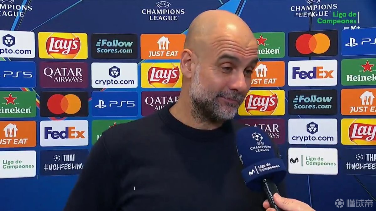 欧冠1/8决赛首回合在伯纳乌0-3负于皇马后,曼城主帅瓜迪奥拉接受了西班牙媒体Movistar+的采访。