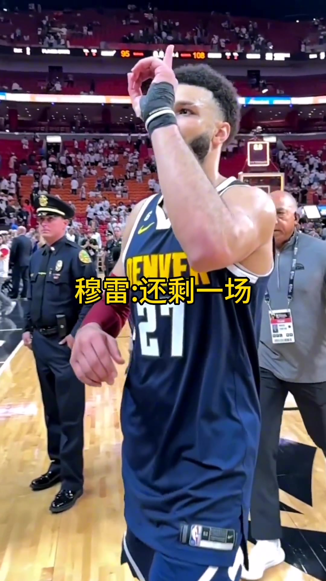 掘金3比1热火穆雷离场时比出还剩一场的手势