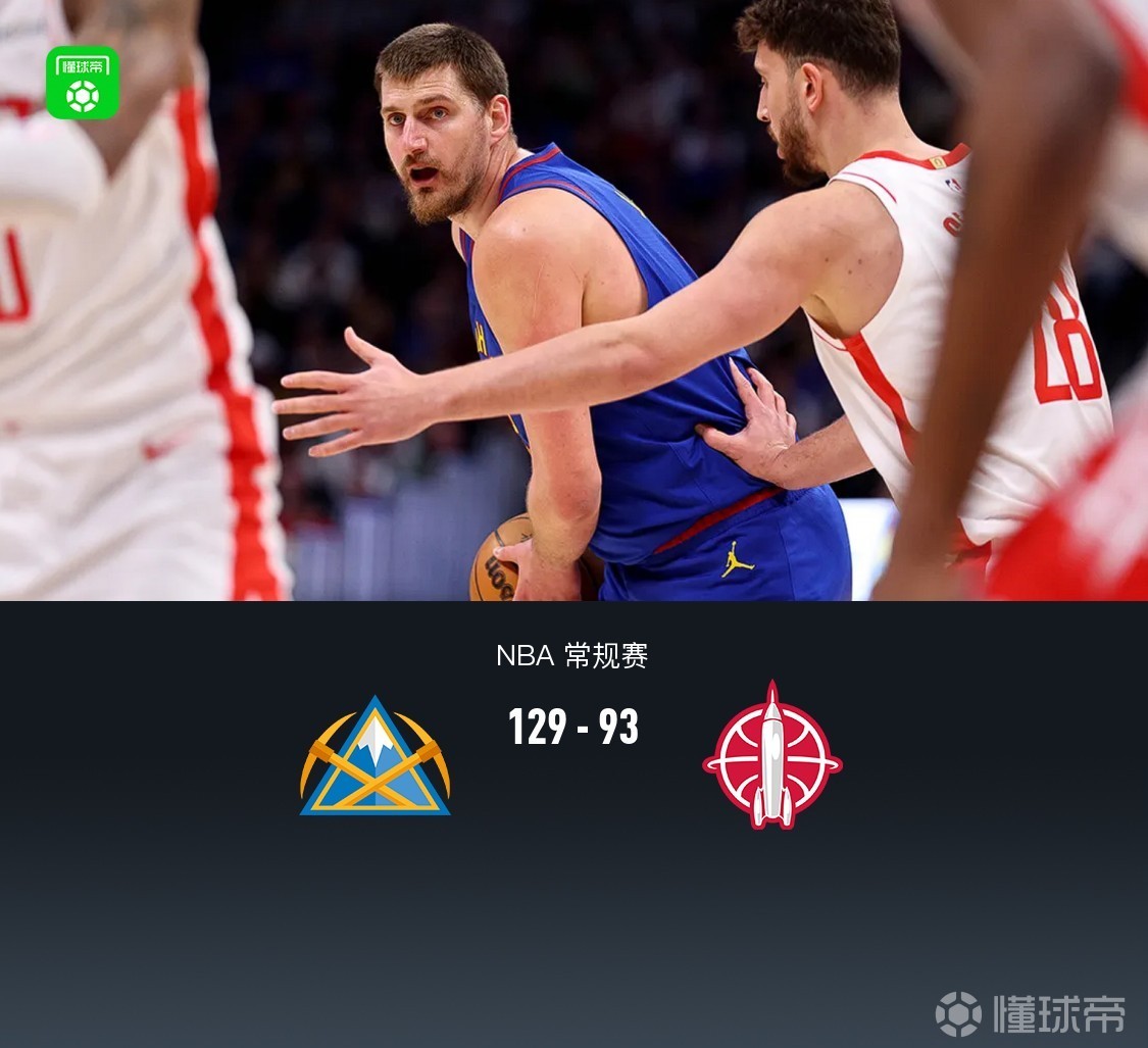 掘金129-93大胜火箭,约基奇三节16+12+13+5断,杜兰特11分,穆雷30分